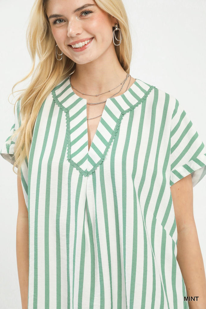 The Mixed Stripe Split Neck Oversized Top is a trendy and comfortable choice. Its unique mix of stripes adds visual interest to the design. The split neck detail adds a modern touch to the overall look. With its oversized fit, this top offers a relaxed and effortless style. Ideal for casual outings or lounging at home in style.