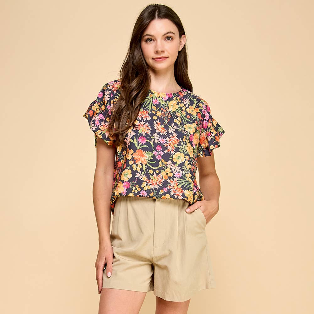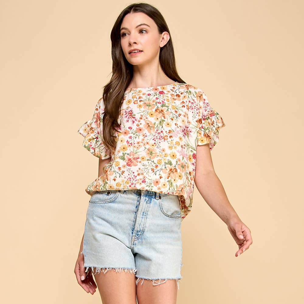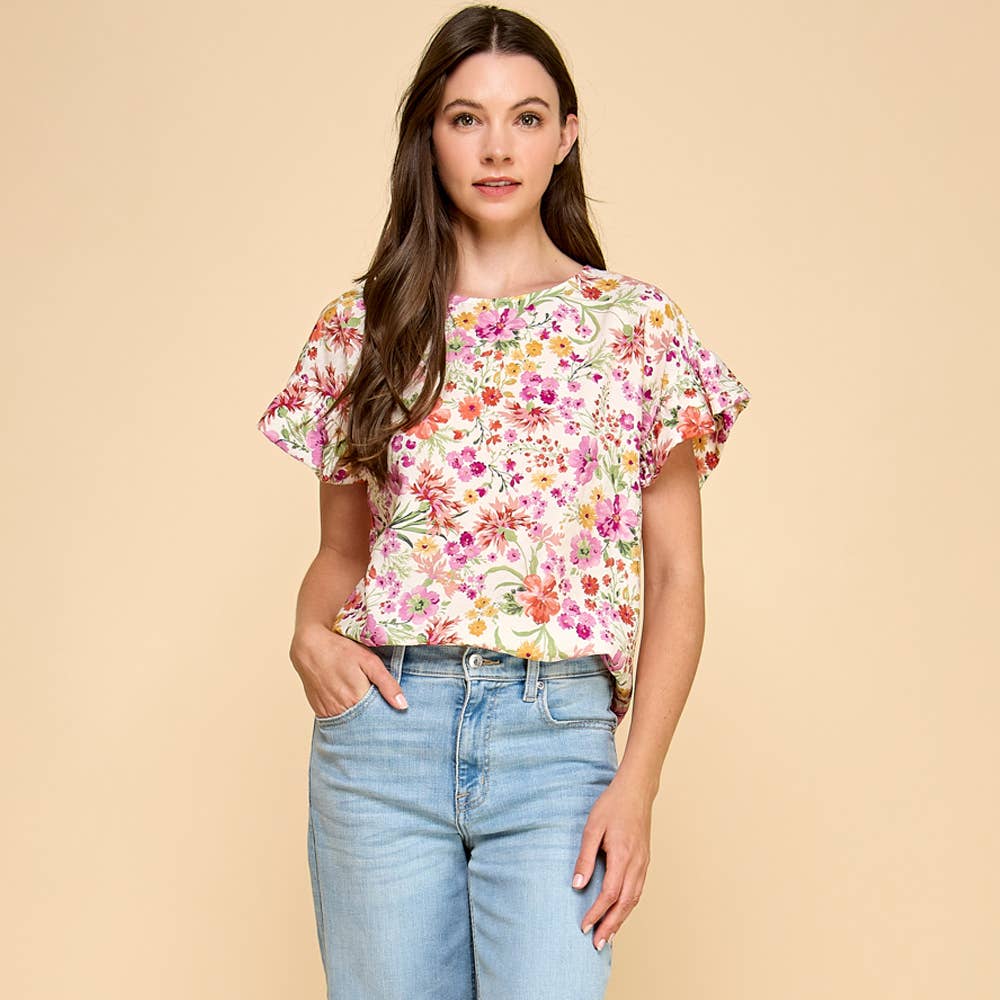 Chasing Blooms Ruffle Sleeve Blouse